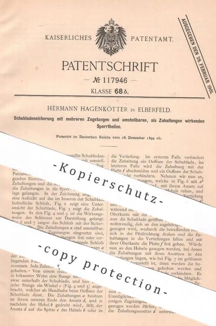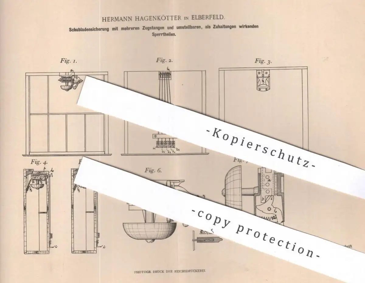 original Patent - Hermann Hagenkötter , Elberfeld , 1899 , Sicherung für Schubladen | Schublade , Möbel , Möbelbauer !!