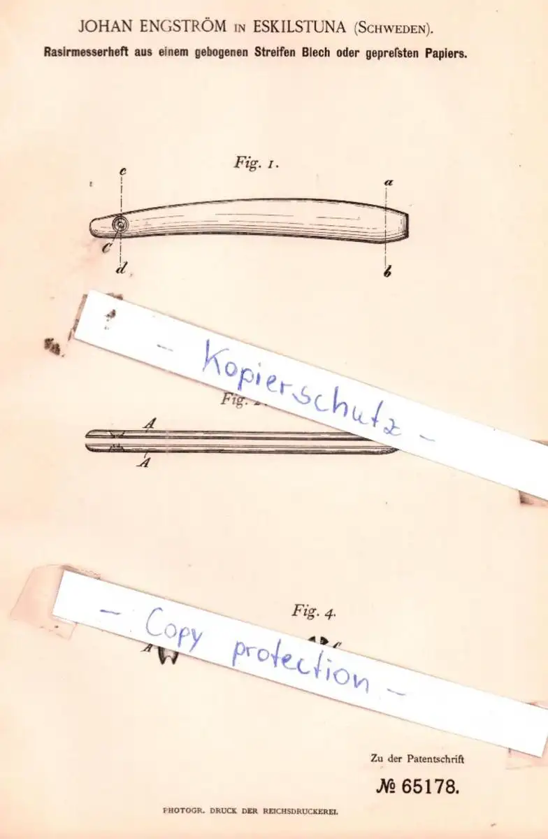 Patent: Rasirmesserheft aus einem gebogenen Streifen blech oder gepreßten Papiers
