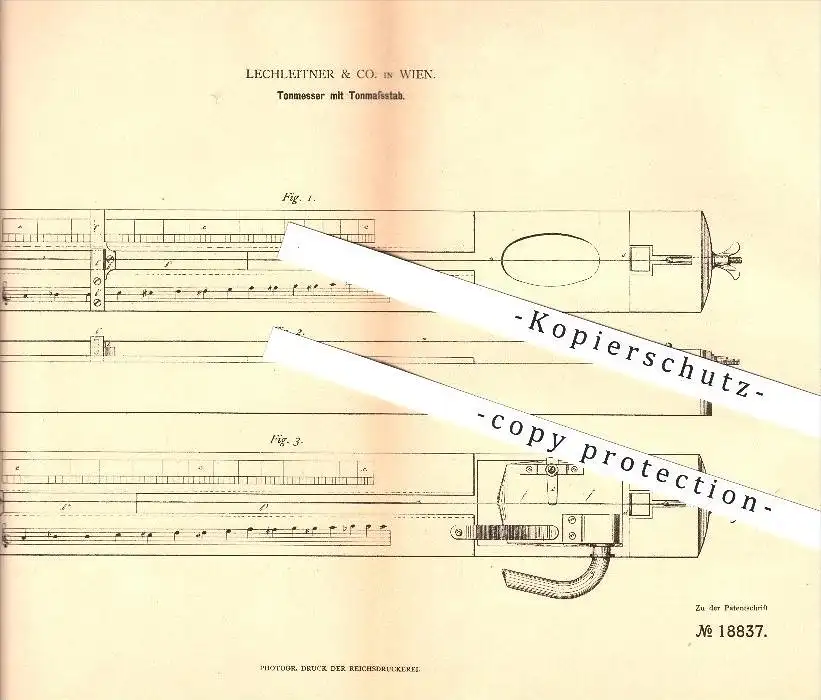 original Patent - Lechleitner & Co. in Wien , 1881 , Tonmesser mit Tonmessstab , Musik , Musikinstrumente !!!