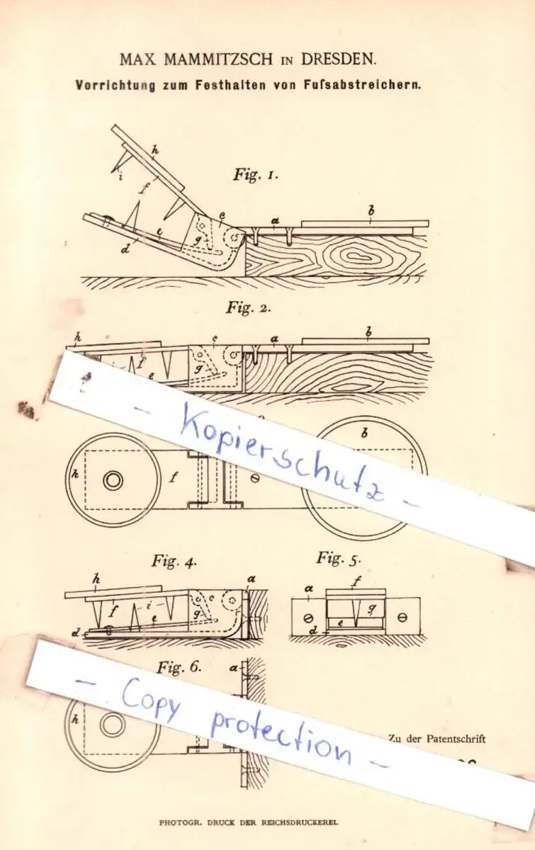 original Patent - Max Mammitzsch in Dresden , 1892 , Vorrichtung zum Festhalten von Fußabstreichern !!!