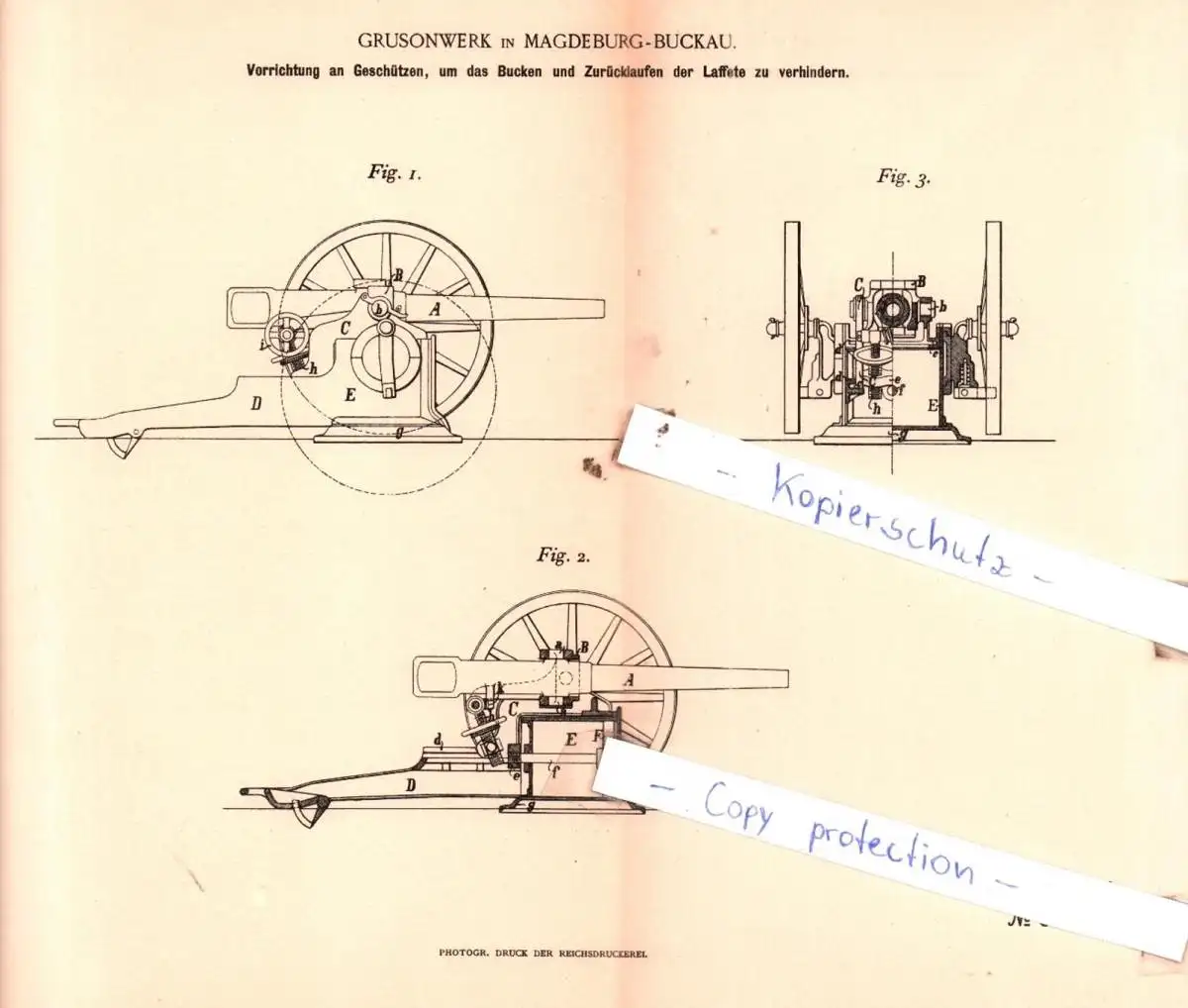 Patent: Vorrichtung an Geschützen, um das Bucken und Zurücklaufen der Lafette zu verhindern