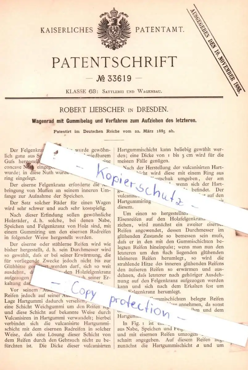 Patent: Wagenrad mit Gummibelag und Verfahren zum Aufziehen des letzteren