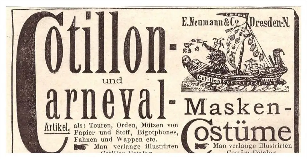 original Werbung - 1891 - Karneval - Masken , Kostüme , E. Neumann & Co., Fasching !!!