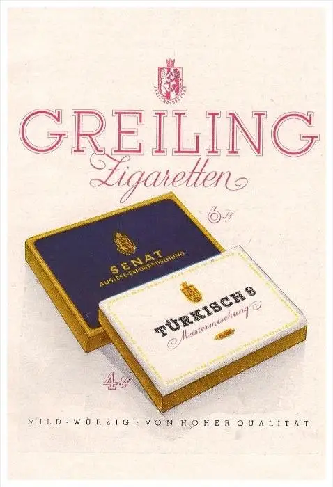 original Werbung - 1941 - GREILING Zigaretten , Cigaretten , Türkisch 8 , Senat !!!
