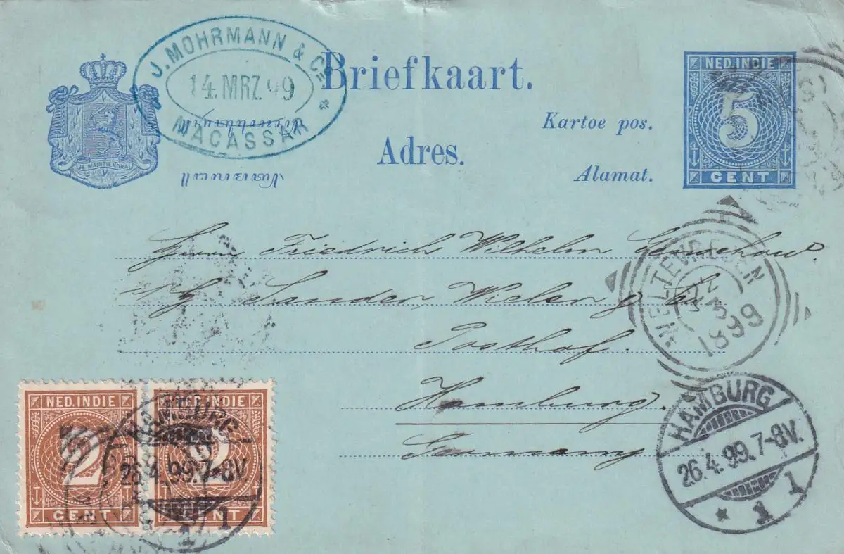 Post card NL-Inde 1899, Macassar vers Hambourg