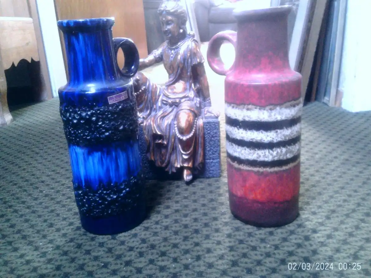 seltene Scheurich 401-28 Vase Kunstkeramik DekorFat Lava blau aus den 1960 Jahren H.28 cm