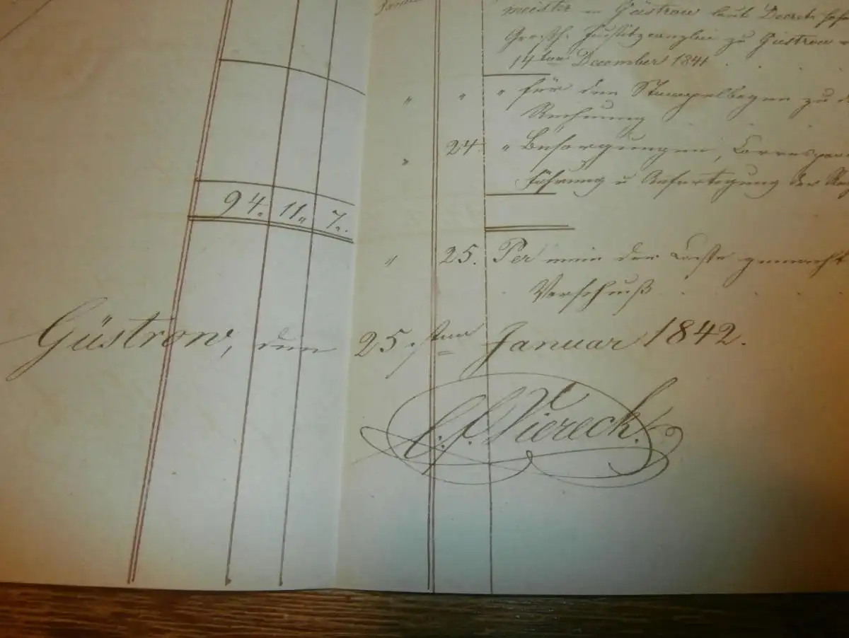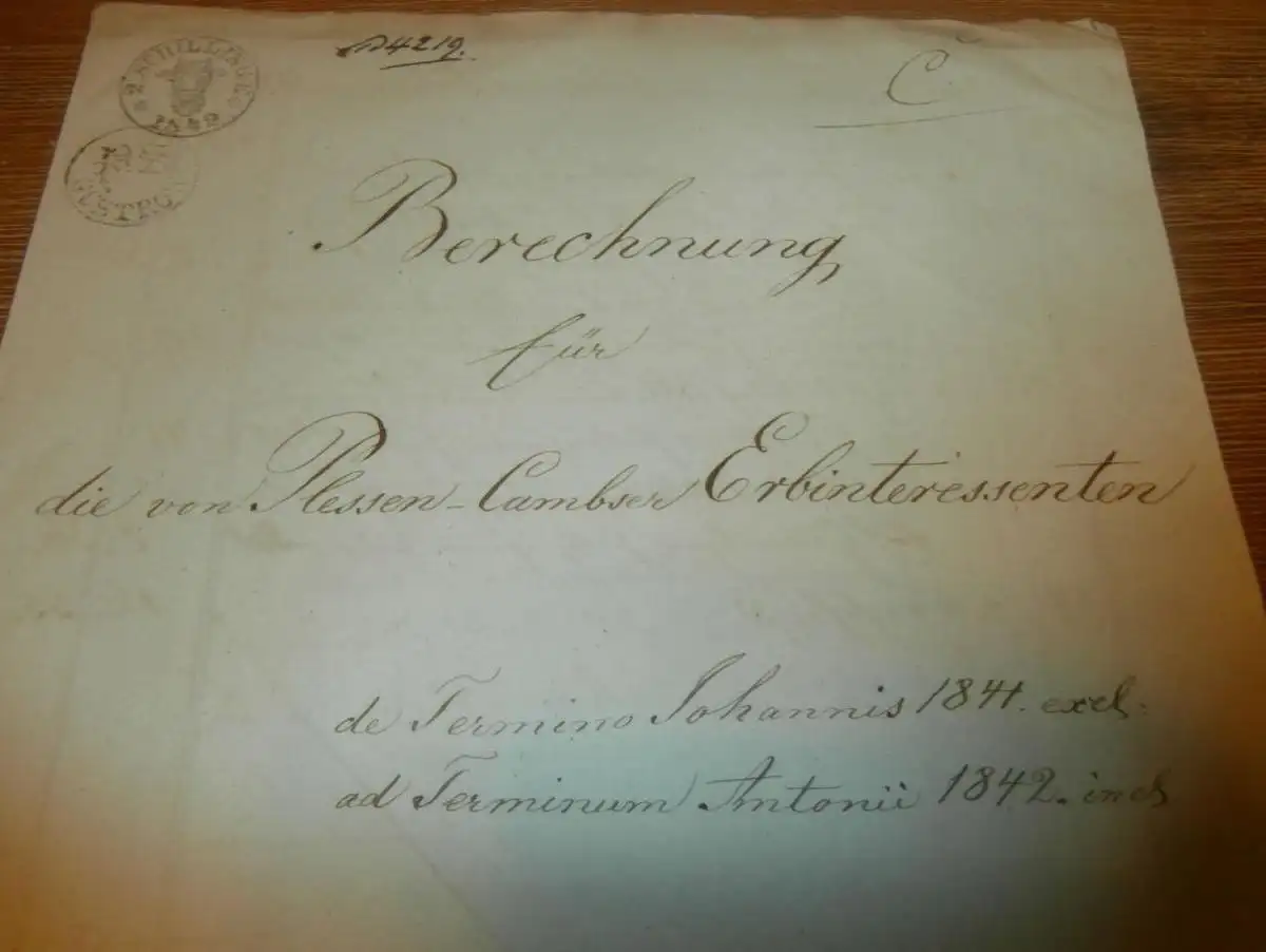 von Plessen in Kambs , 1842 , Viereck zu Güstrow , Dokument , Adel Mecklenburg !!!